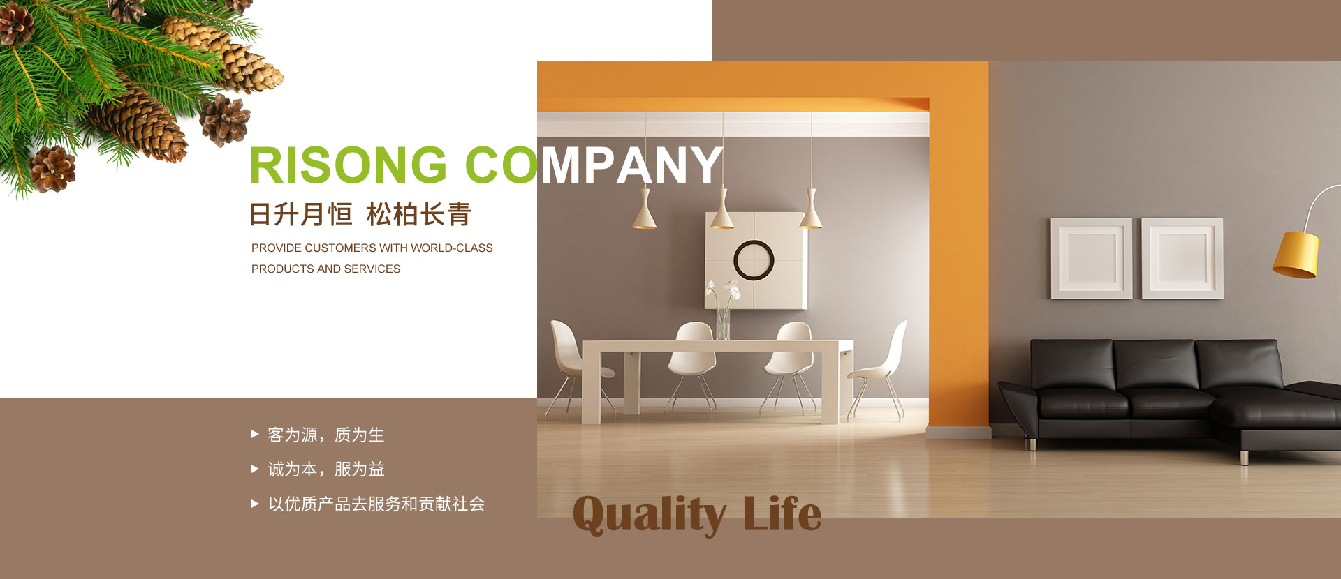 大連日松將一直秉承“以優(yōu)質(zhì)產(chǎn)品去服務(wù)和貢獻社會”的經(jīng)營宗旨;“客為源,質(zhì)為生、誠為本、服為益”的經(jīng)營理念;達到“使用者、銷售者、制造者”三者并存共榮之經(jīng)營思路;全體日松人將以“熱情、禮貌、快捷、準(zhǔn)確”的行動指南,不懈努力的為每一位客戶,提供行業(yè)內(nèi)一流的高端、環(huán)保、舒適、健康的產(chǎn)品和細節(jié)服務(wù),打造出適合“您”的優(yōu)質(zhì)家居住宅環(huán)境。